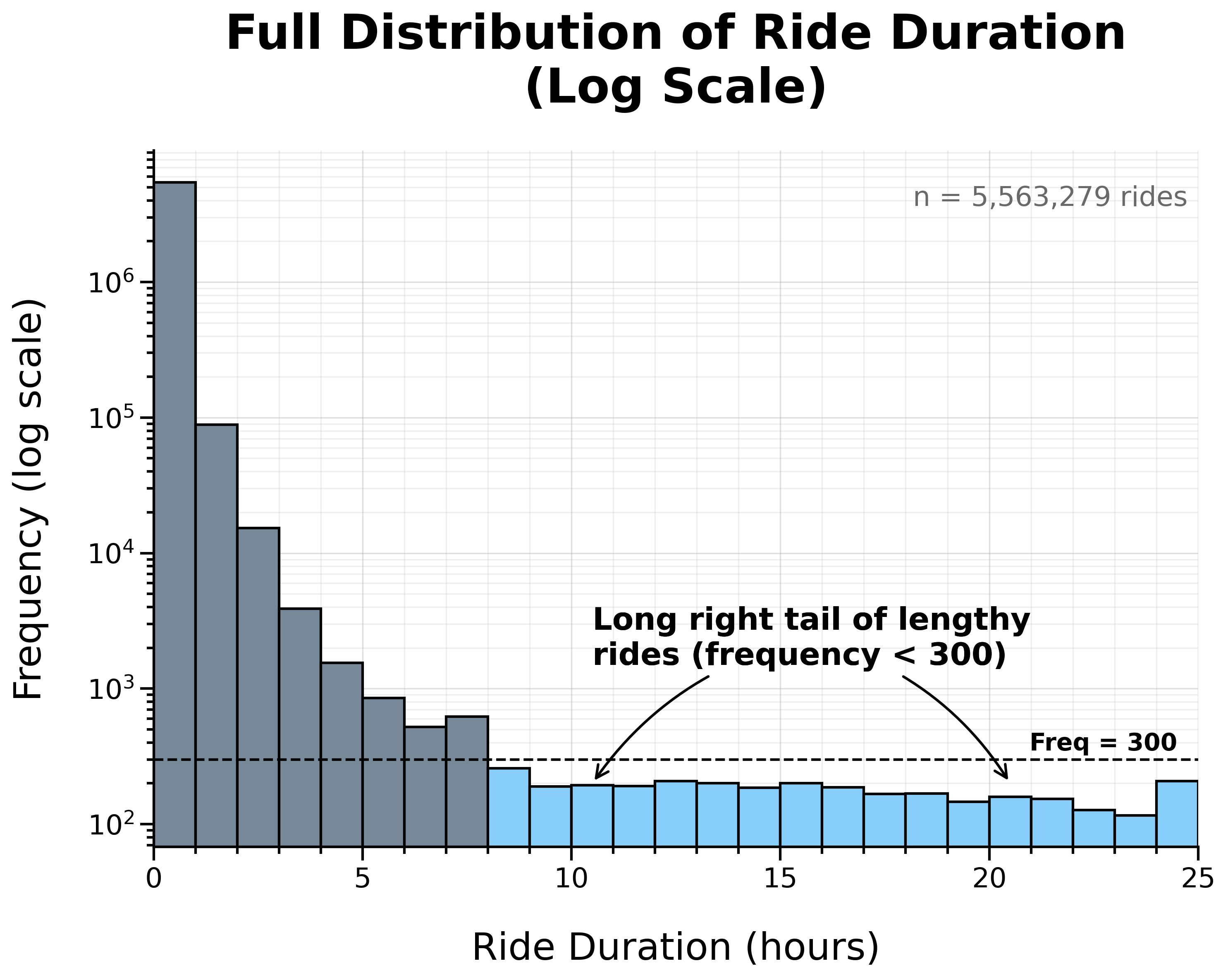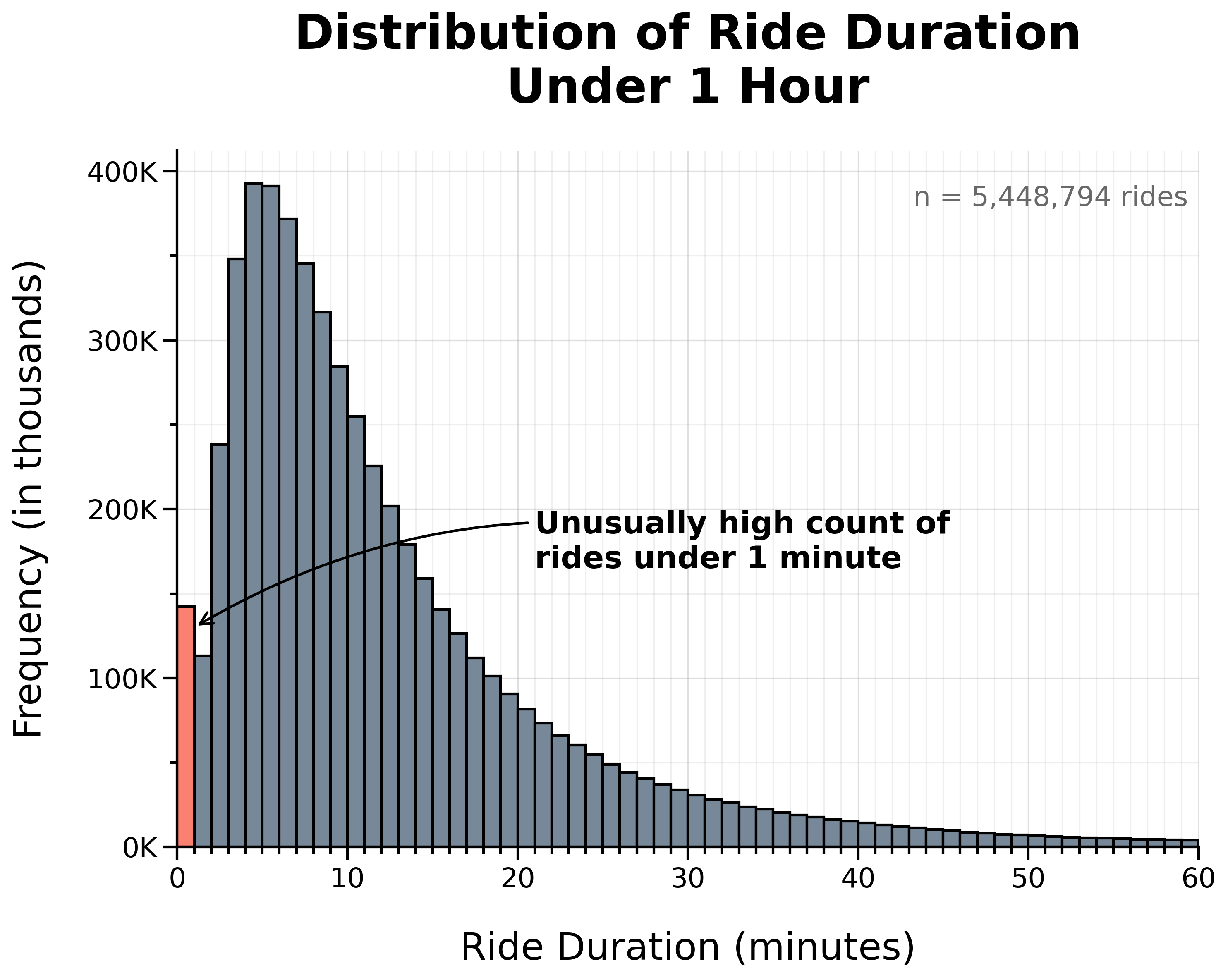 First, I checked for duplicate rows and rides, since duplicates could bias the analysis.